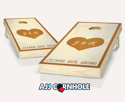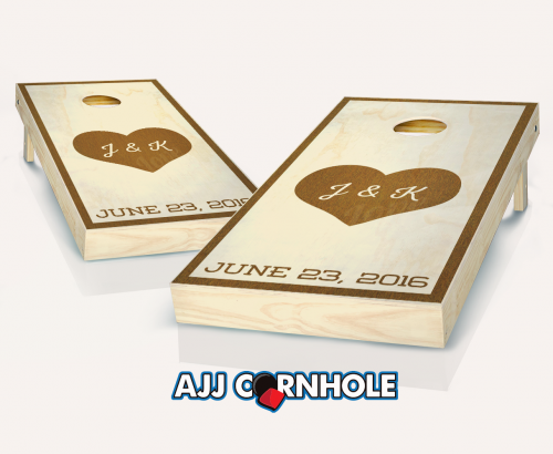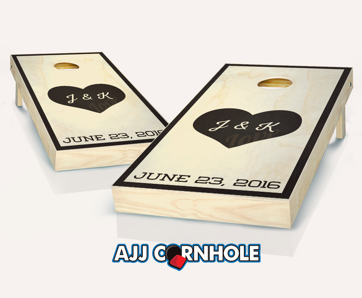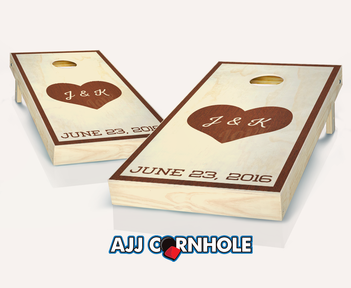 "Heart Initials" Stained Cornhole Set