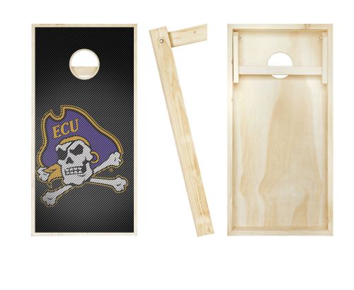 The decal is printed vinyl and finished with a clear coat polyurethane to protect your boards for years of Cornhole! All sets are made using a premium 2x4 frame and 1/2" sanded plywood playing surface. Each set has folding 2x4 legs secured with galvanized bolts.