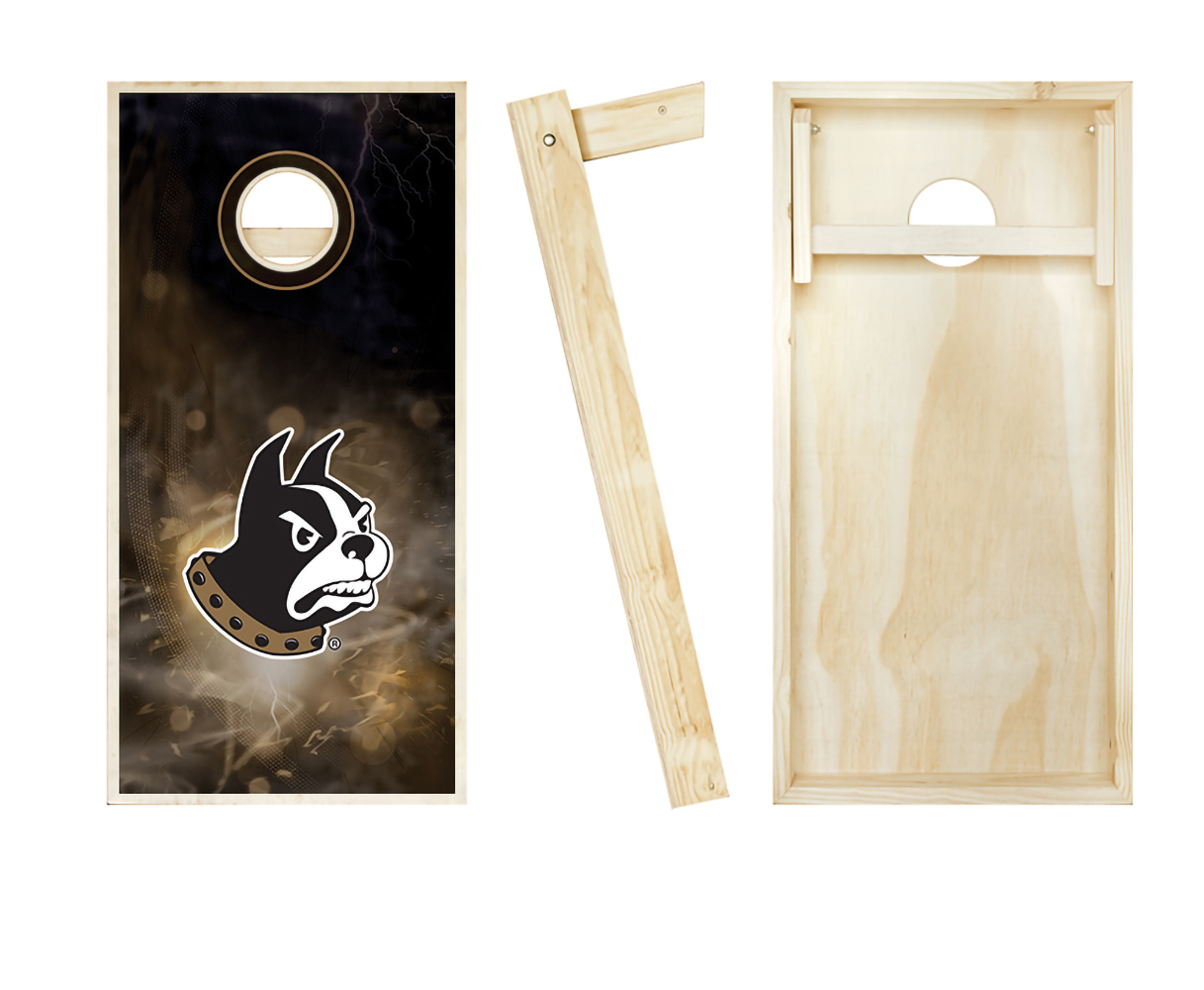 The decal is printed vinyl and finished with a clear coat polyurethane to protect your boards for years of Cornhole! All sets are made using a premium 2x4 frame and 1/2" sanded plywood playing surface. Each set has folding 2x4 legs secured with galvanized bolts.