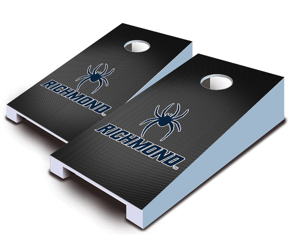 The cornhole boards measure 10" x 5" and the bags measure 1" x 1".